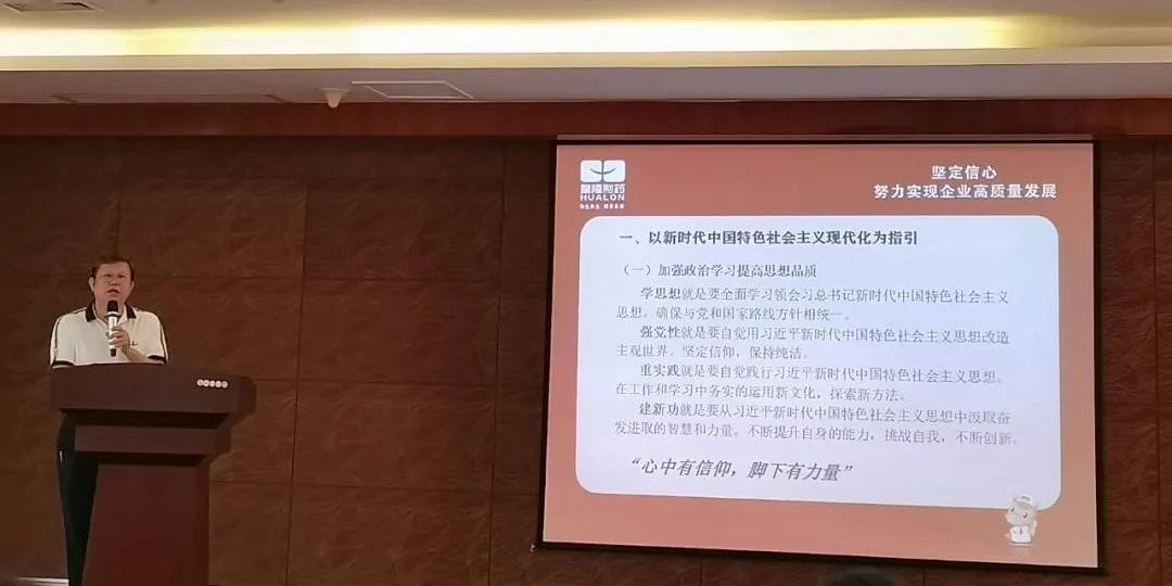 6月30日,海南皇隆制藥黨支部書記陳益智組織全體黨員、領導干部和員工400余人在公司大會議室開展主題教育學習,他結合習近平新時代中國特色社會主義思想闡述了如何發(fā)揮政治引領和黨員先鋒模范作用,結合黨課教育客觀務實分析了公司當前在行業(yè)中面臨的挑戰(zhàn)和機遇,全體與會人員深受教育和鼓舞,均表示爭做“兩個確立”的堅定擁護者、“兩個維護”的忠實踐行者,創(chuàng)優(yōu)爭先、發(fā)揮先鋒模范作用。